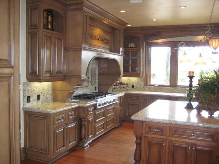 Every inch of Chateau Très Belle was hand-finished—walls, ceilings, cabinetry, moldings, and even the exterior window surrounds. The entry doors were individually hand-distressed, stained, and glazed to achieve a genuine 17th-century character.