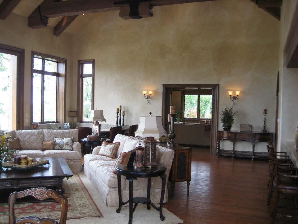 The 12,000-square-foot estate known as Chateau Très Belle stands as one of Mark Pothier’s most detailed and comprehensive projects to date—an elegant testament to the enduring art of faux finishing and Venetian plaster. Situated in Rancho Santa Fe, California, this new-construction home required a year and a half of hands-on artistry from Mark and his skilled crew, ensuring that every surface reflected the warmth and authenticity of classic European craftsmanship.