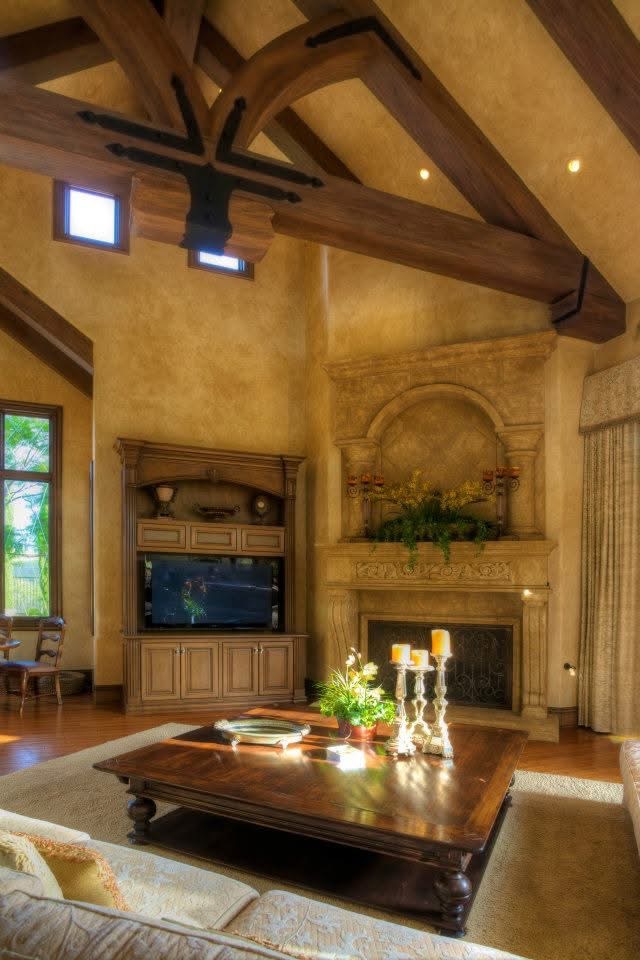 Old World Walls and Limestone Fireplaces
